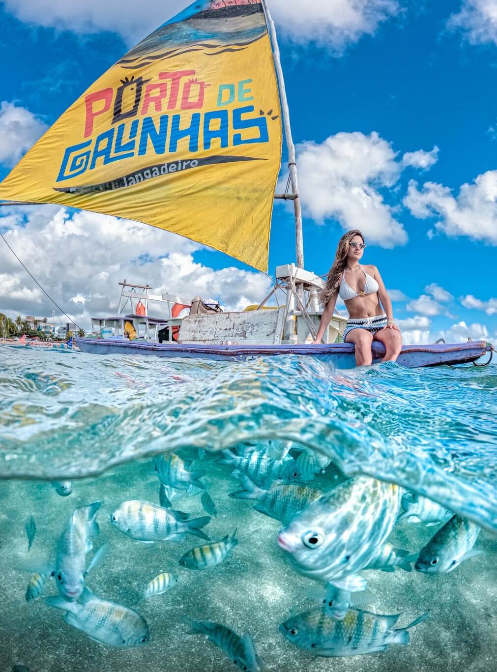 O Passeio de Jangada é uma das experiências mais tradicionais de Porto de Galinhas, levando você até as piscinas naturais de águas cristalinas, onde é possível observar peixinhos coloridos e desfrutar de um banho relaxante em meio ao mar.